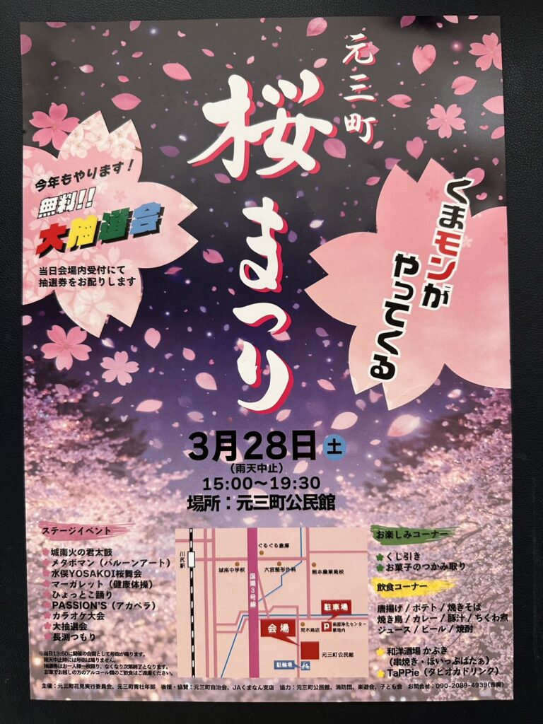 3/28 熊本市南区元三町桜まつり 会場 臭わない仮設トイレ2台設置いたします 2026年3月20日 最終更新日時 : 2026年3月20日 admin_nyamo 3/28熊本市南区元三町桜まつり 会場元三町桜実行委員会様 臭わない仮設トイレ2台設置いたします