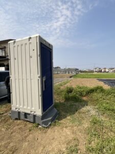 移転オープン改装工事現場(熊本市東区花立)に臭わない仮設トイレ1台設置いたしました。 住宅街に隣接していますが、臭いがなく工事現場でも👷安心してお使いいただいています。ありがとうございます😊